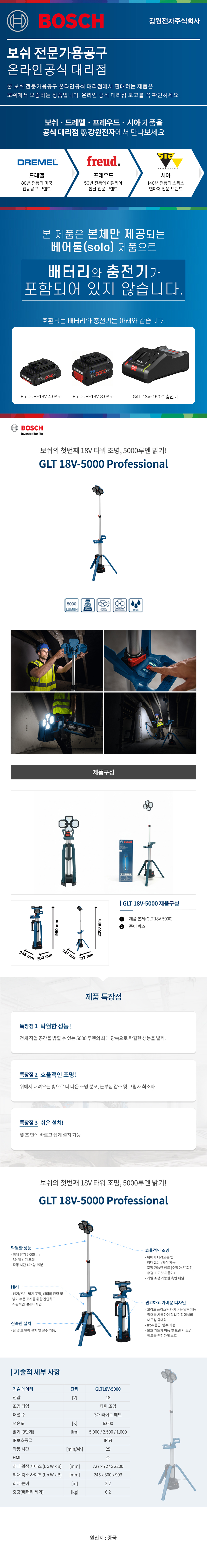 보쉬 GLT 18V-5000 타워형 충전 LED 작업등 본체(베어툴) 06019P5000