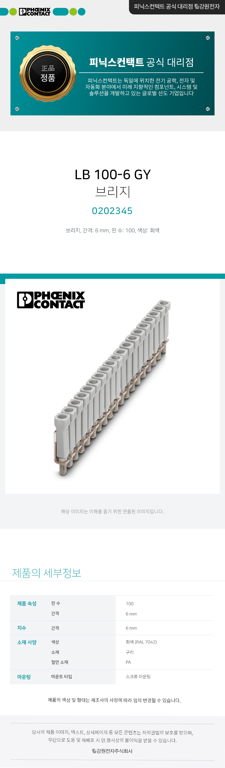 피닉스컨택트 LB 100-6 GY 점퍼 0202345 0202345