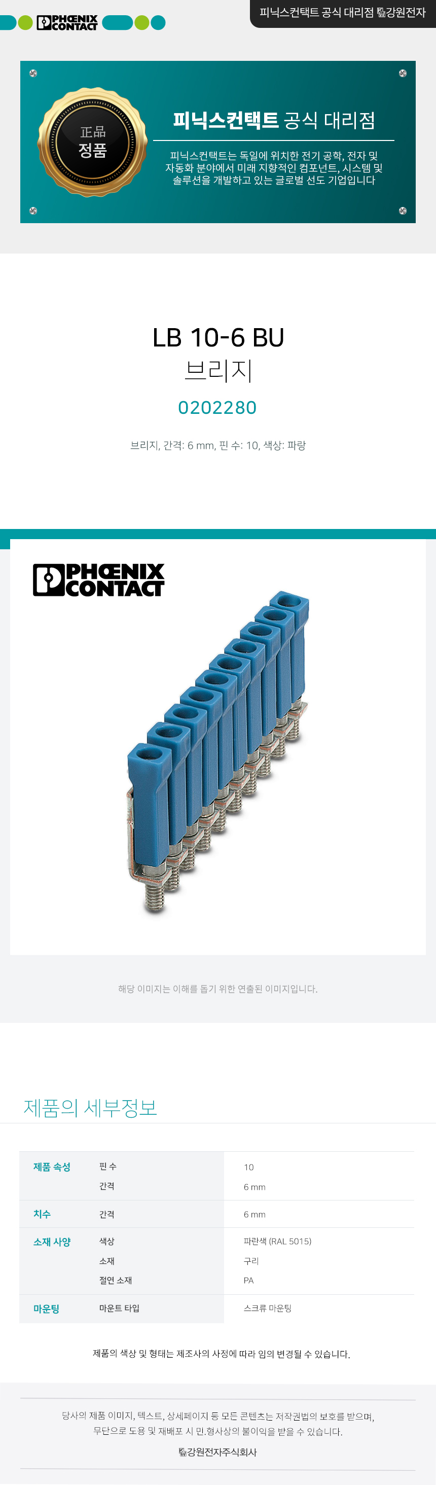 피닉스컨택트 LB 10-6 BU 점퍼 0202280 0202280
