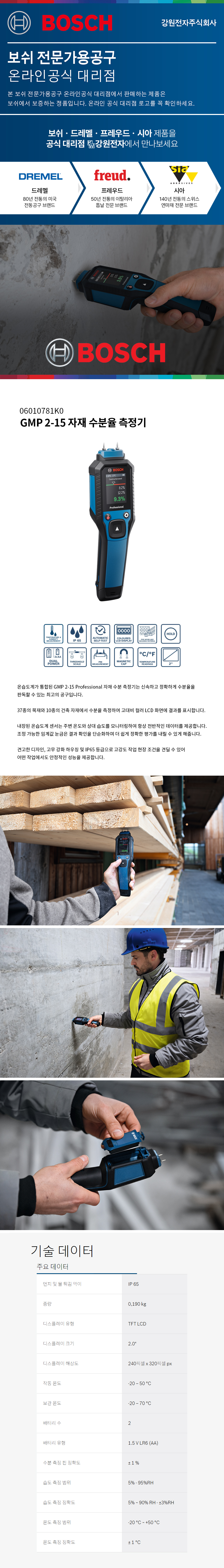 Bosch, 수분측정기, 수분율측정기, 자재수분율, IP65 보호 등급
