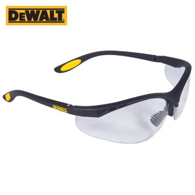 Dewalt, 랩어라운드, 곡선형 프레임, 152x65x50mm, 28g, UV 99.9%차단, Class 1 광학 등급 렌즈, 소프트 고무 코받침, 프레임 다리 쿠션 패드