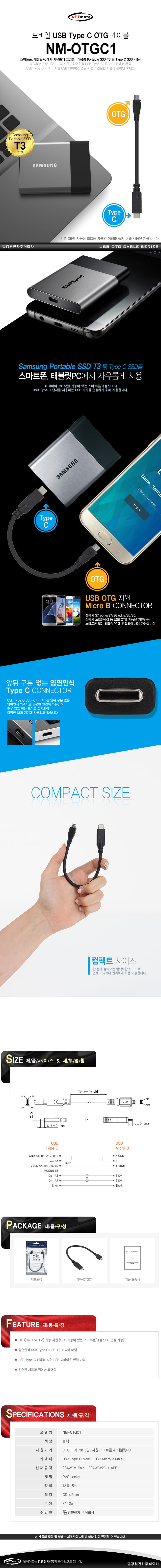 강원전자 넷메이트 NM-OTGC1 모바일 USB Type C OTG 젠더(블랙) NM-OTGC1